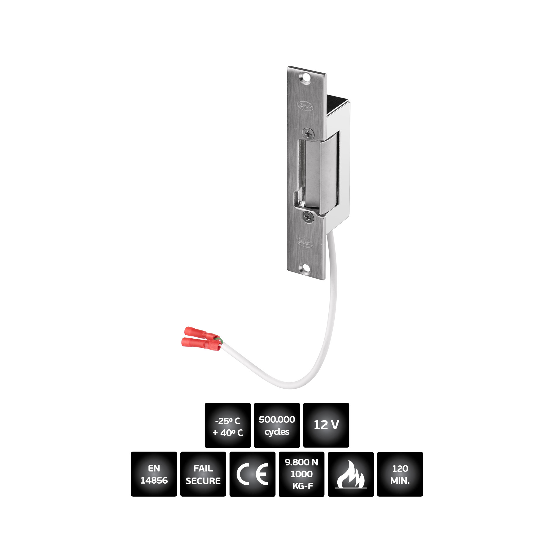 Reversible fireproof electric strike. Power input 12 Vac-Dc.
