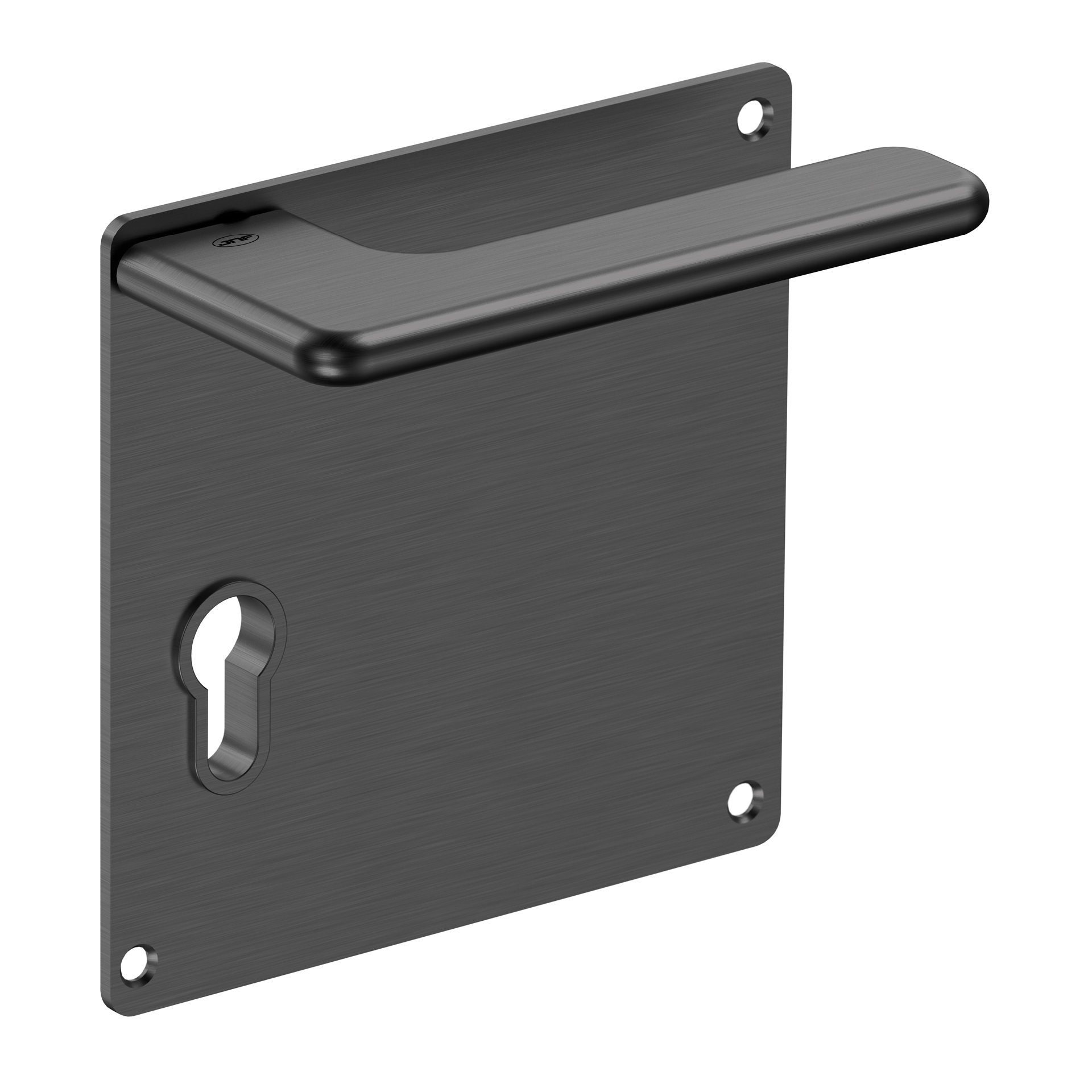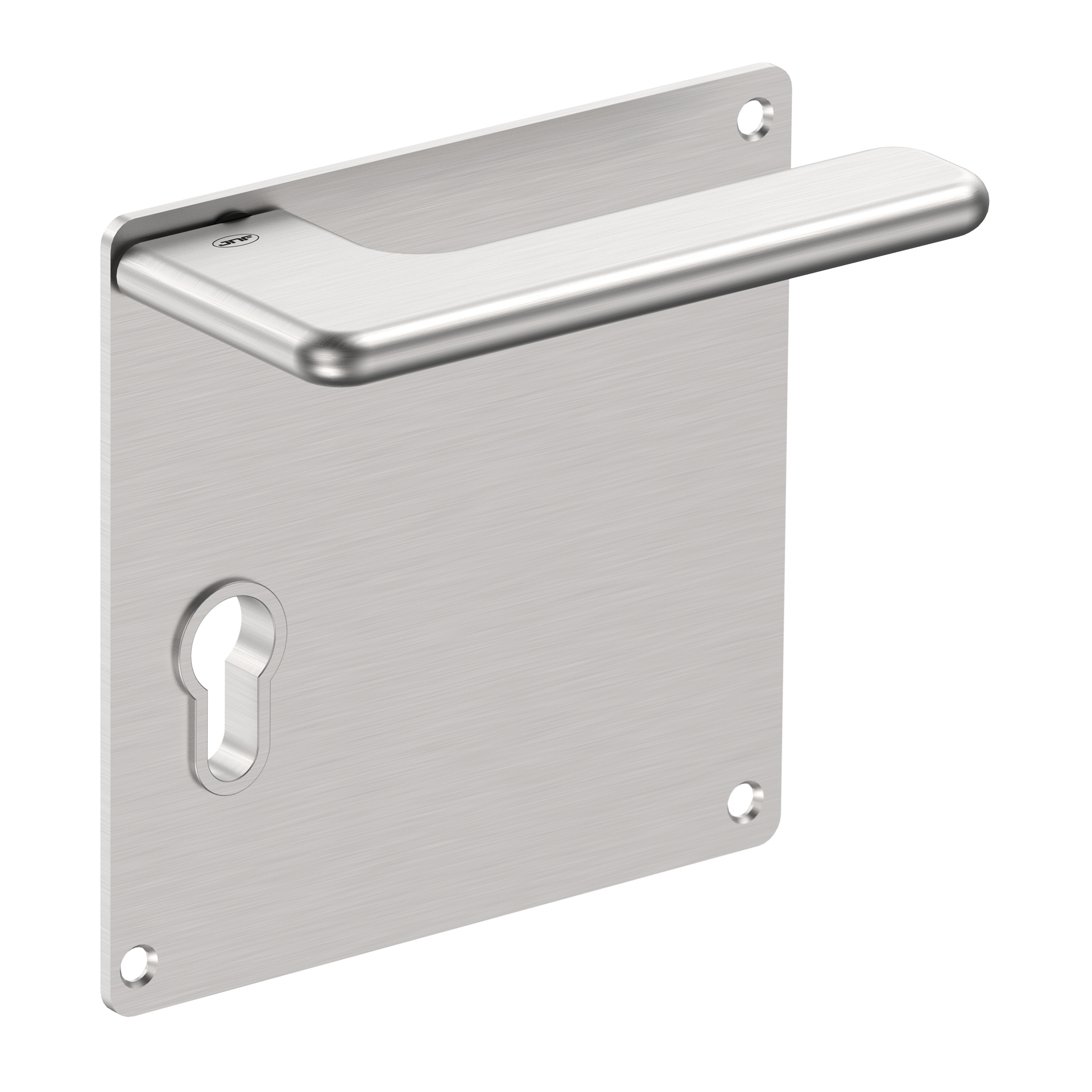 Lever handle with plate for european cylinder.