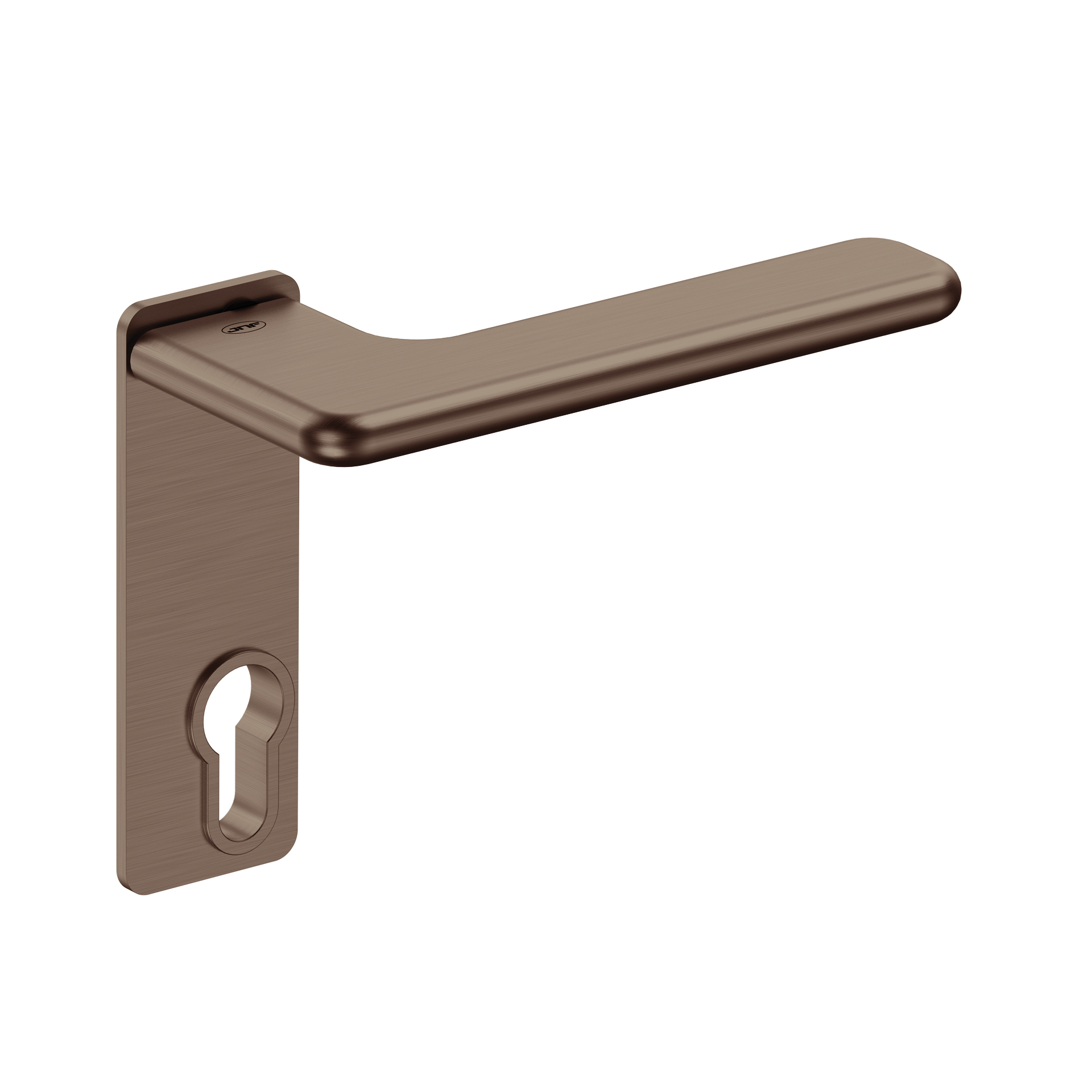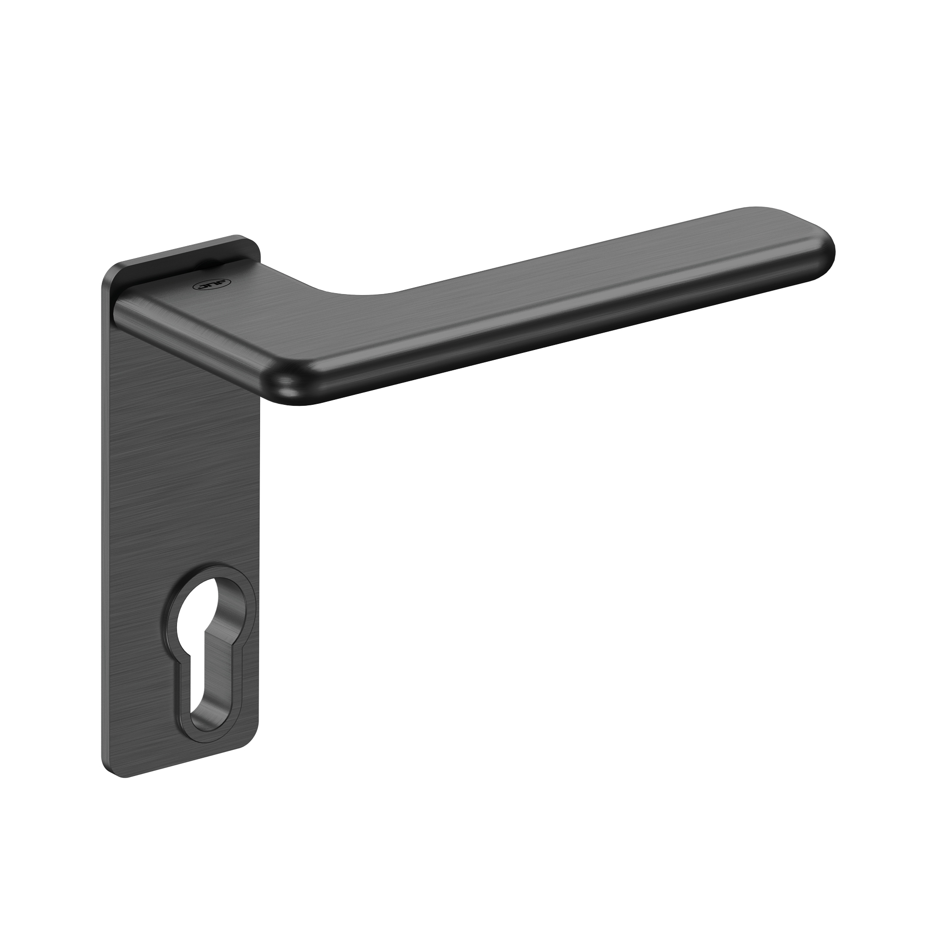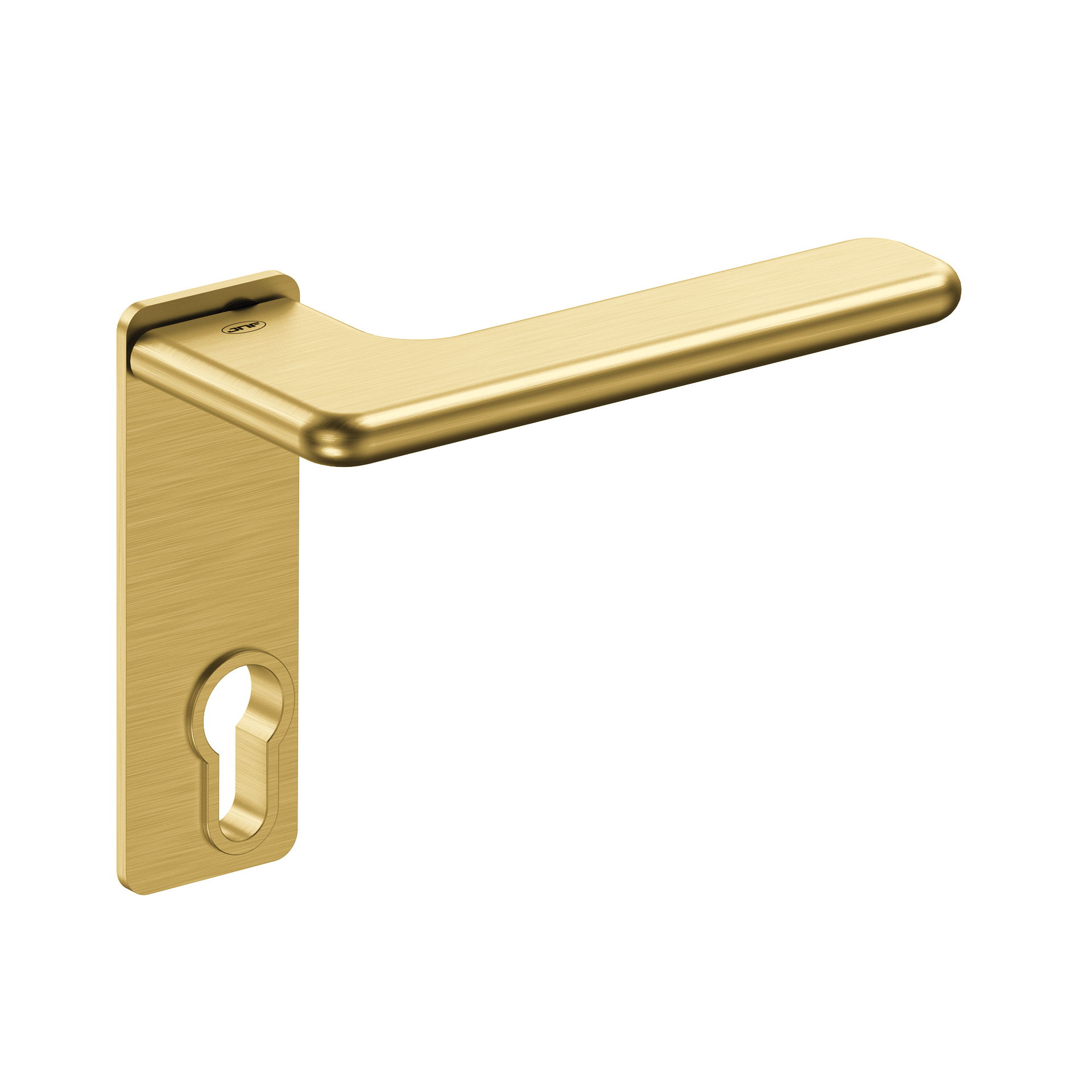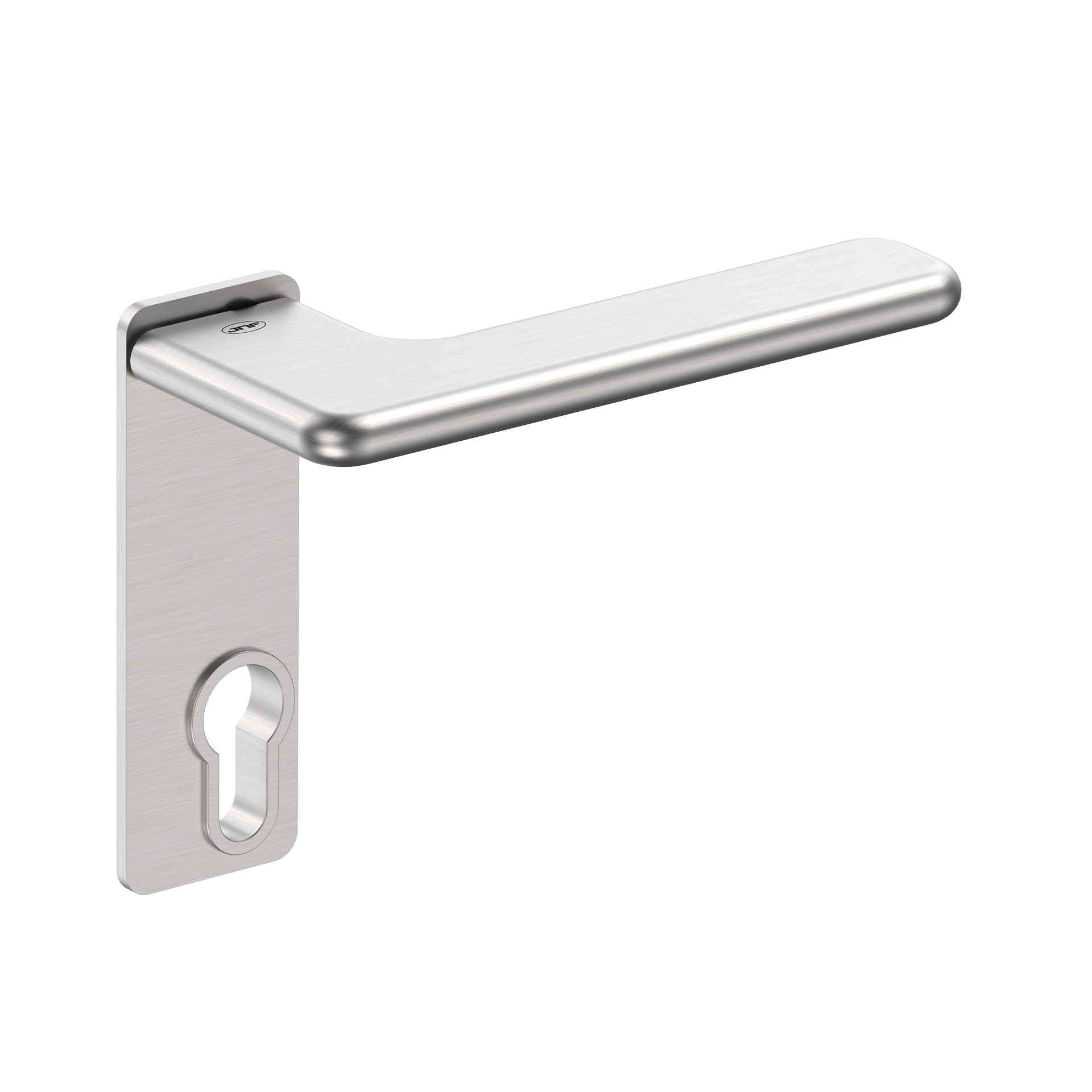 Lever handle with plate for european cylinder.