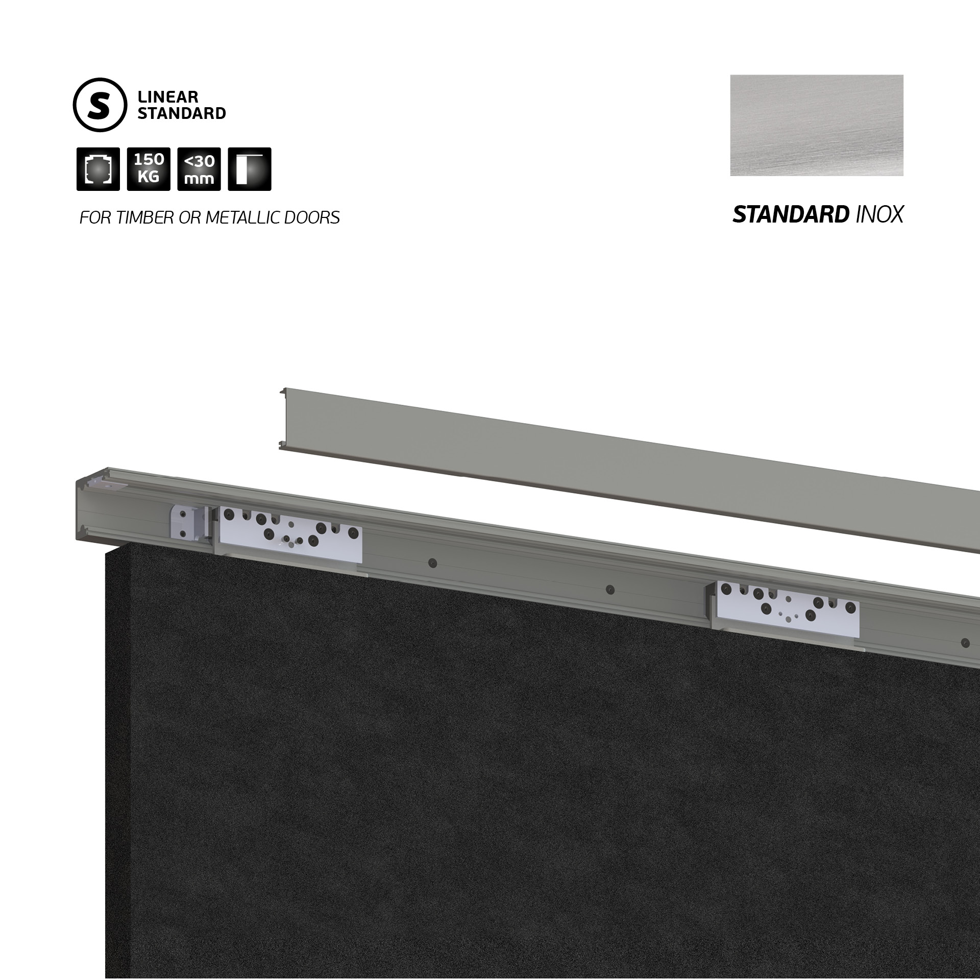 Linear standard single door. Complete sliding door set for wood. Standard Inox IN.15.710 3000mm