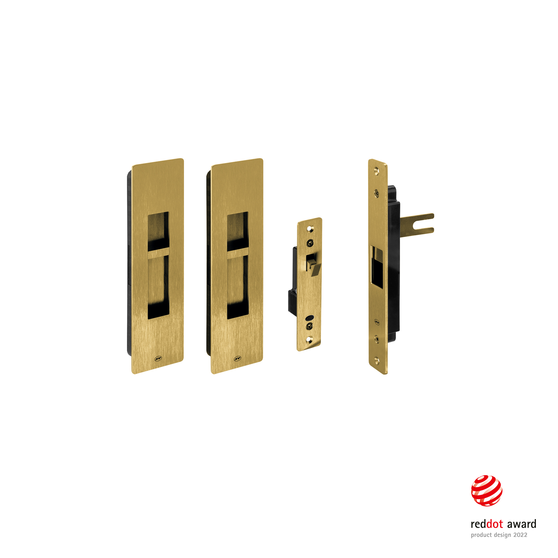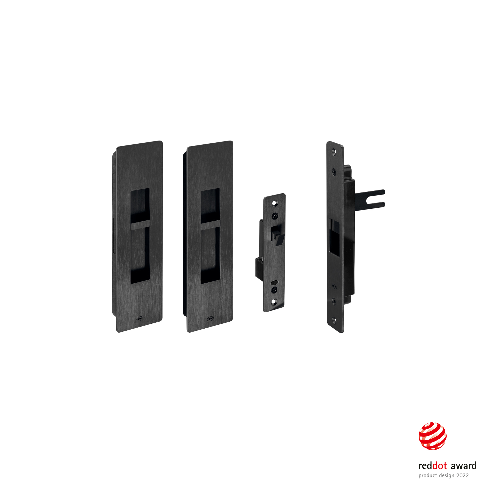 Magnetic lock with flush handle concept for sliding doors, with opening from both sides with button.