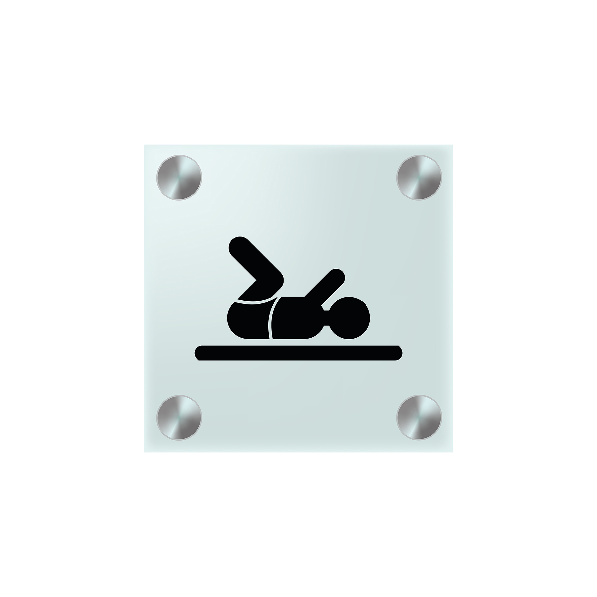 Pictogram applied in tempered transparent glass.